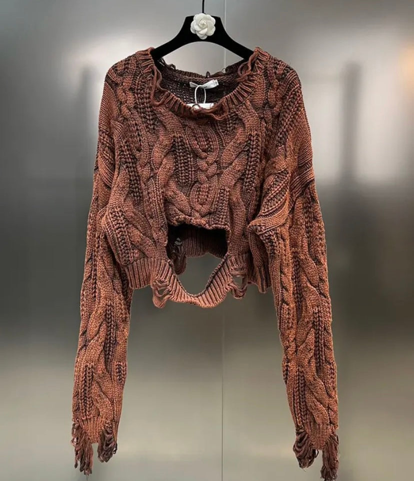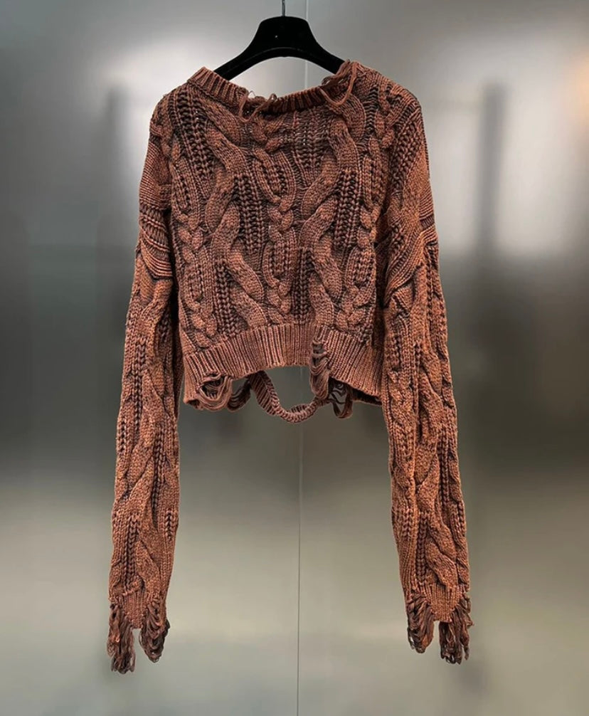 Thick Wool Ripped Cropped Sweater