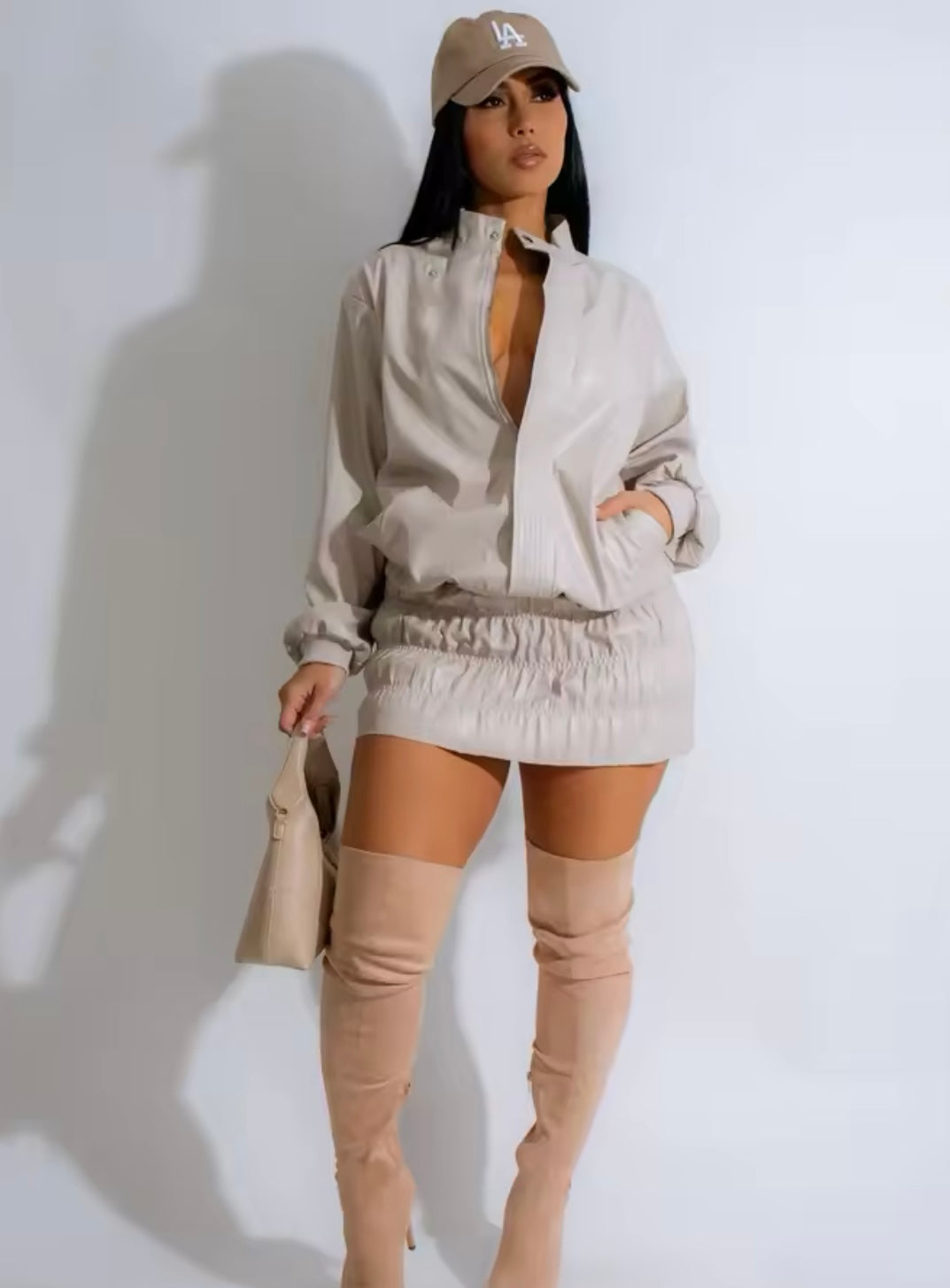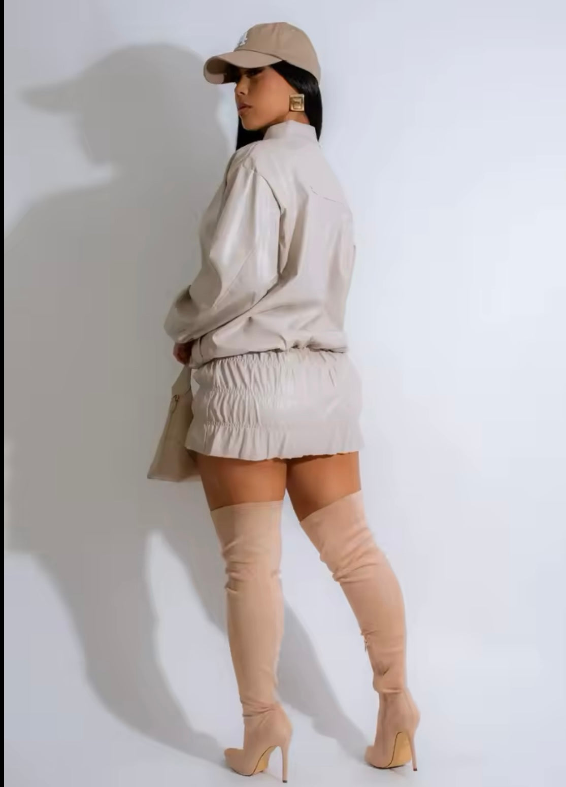 2 Piece Faux Leather Jacket & Skirt Set